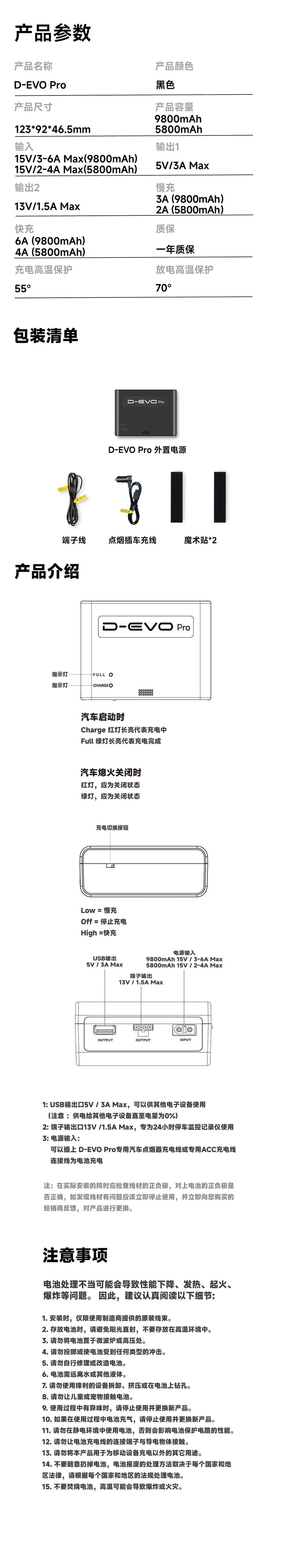 5800mAh/9800mAh 双输出口(端子线、USB口)
